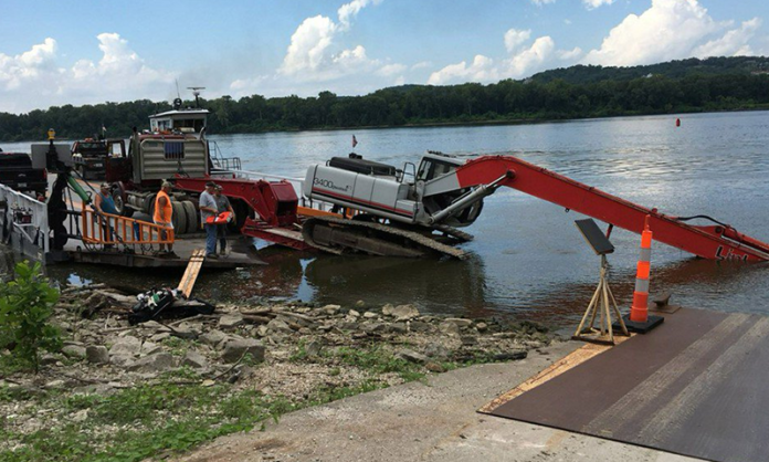 Ferry partially sunk after “freak accident” involving semi truck, track hoe