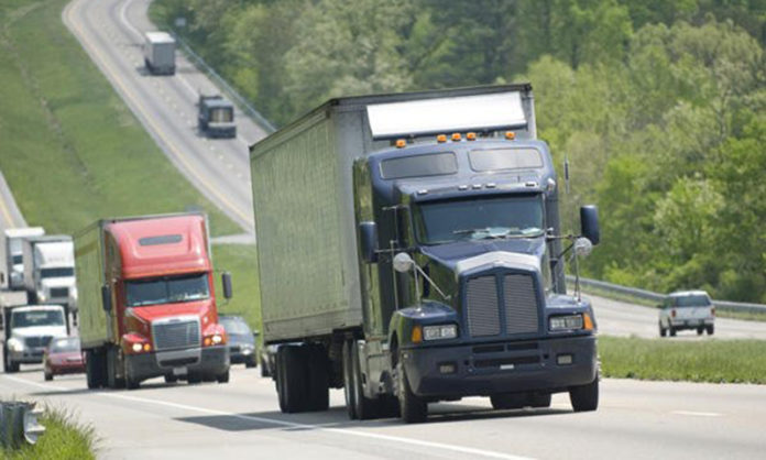Traffic on the roadway is comprised of 25% semi trucks.