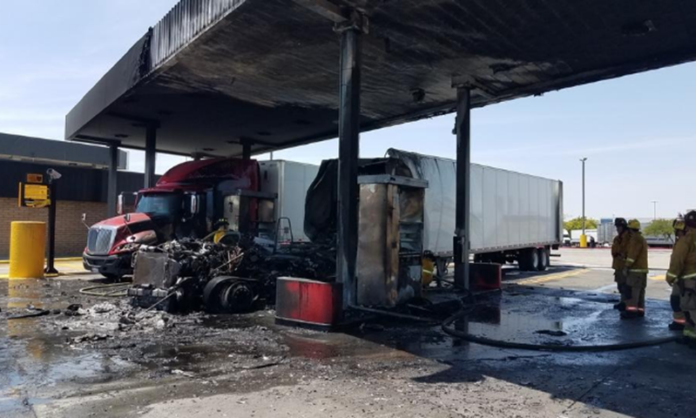 Spontaneous fire leaves semi truck “melted” at fuel pump
