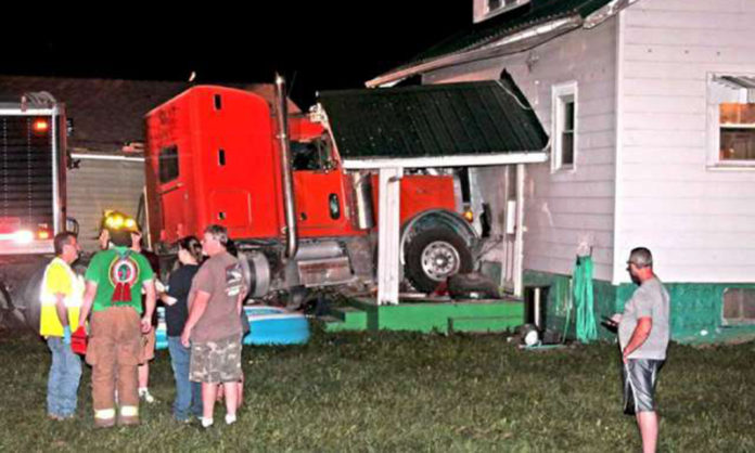 Big rig comes to unexpected stop on front porch of local residence