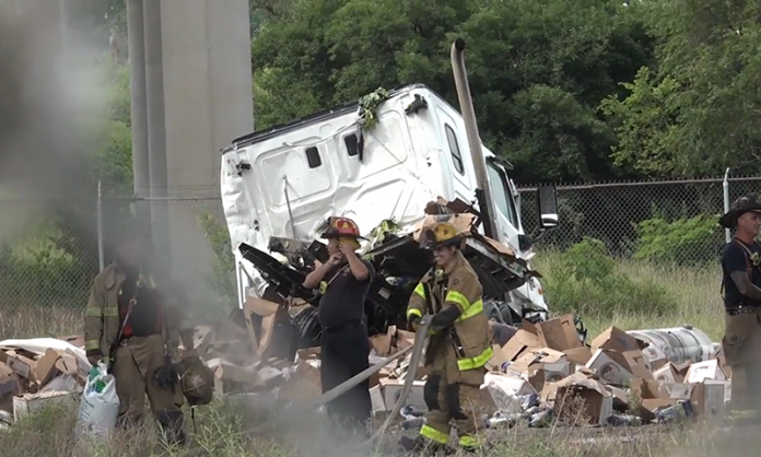 Removal of sunken big rig, trucker following serious crash still underway