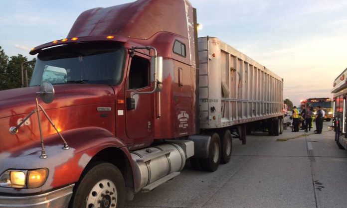 The only injury sustained was a minor injury to a concrete pump truck driver who incited the wreck.