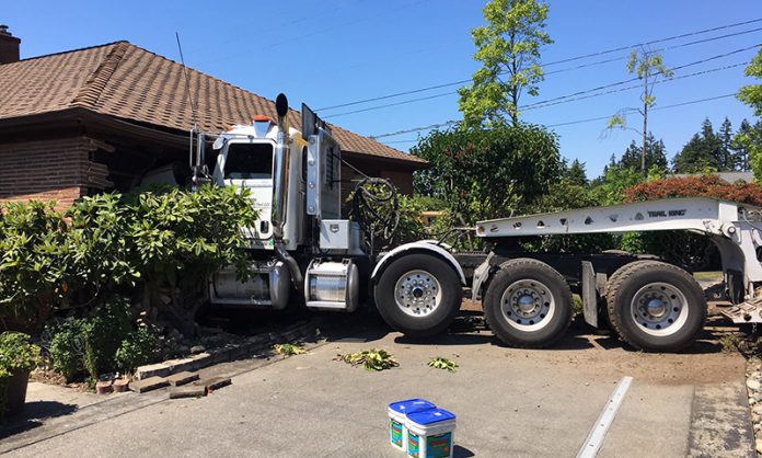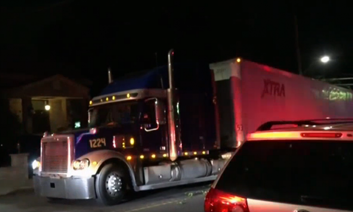 Everyone unhurt after semi truck breaks free of construction site, barrels towards driveway full of children