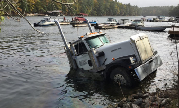 Police searching for driver after discovering wrecker, semi truck abandoned in water-filled ravine
