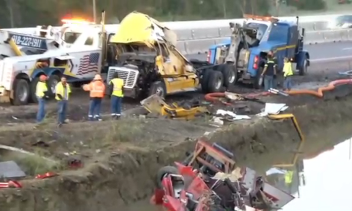Big rig stopped on train tracks as driver asks for directions struck by oncoming train