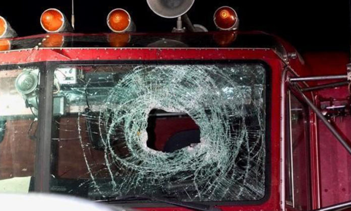 POLICE: injured trucker says his windshield “exploded” after being struck with a “large stone”