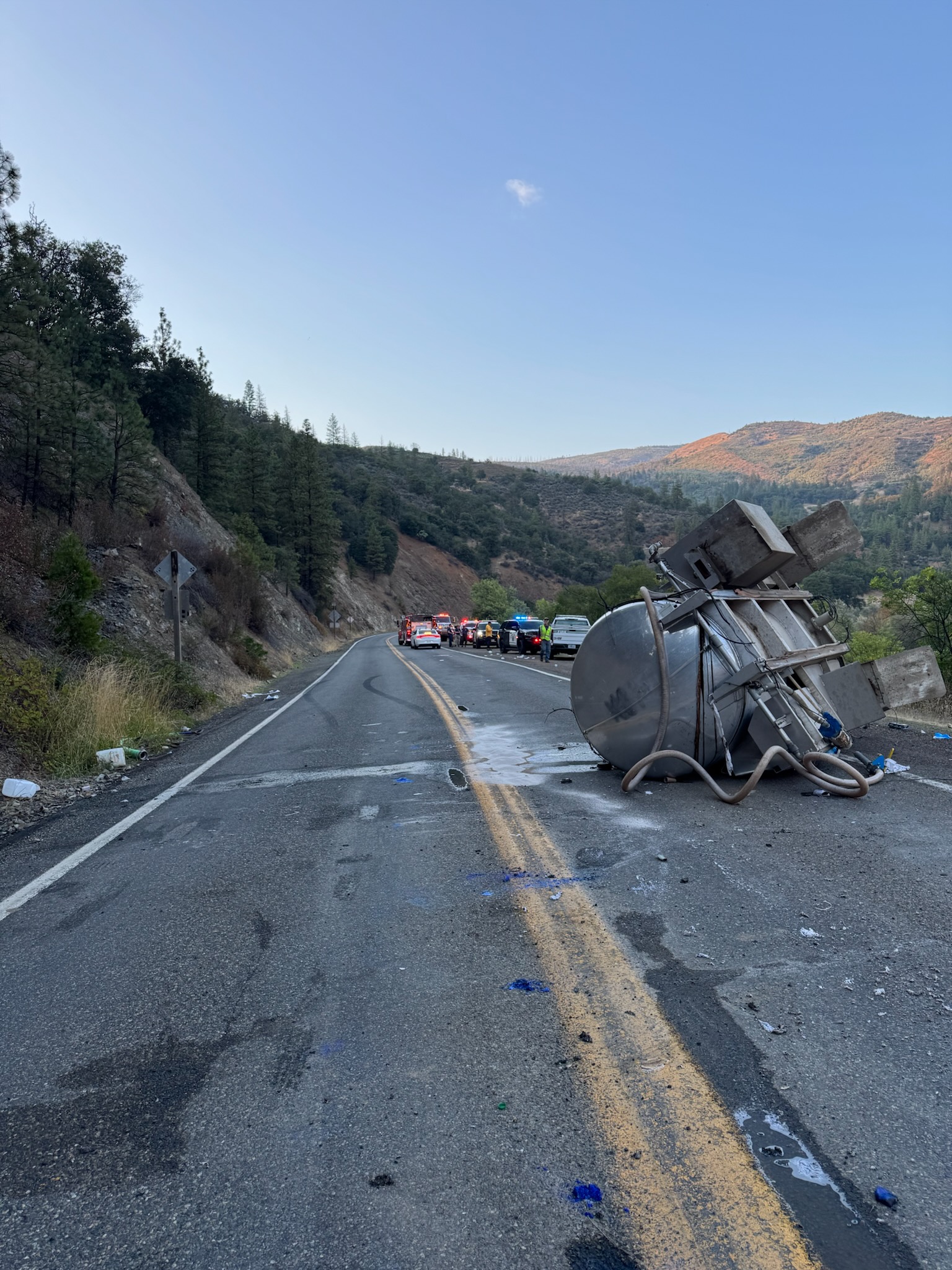 “Thank you to Caltrans and our tow operators for making a swift cleanup and minimizing any further hazmat exposure! CHP said.