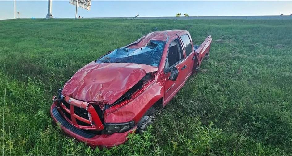FHP said that a semi truck changed lanes and sideswiped a Camry. This caused a Dodge Ram driver to swerve and strike both vehicles before overturning. The Dodge Ram hit an FHP cruiser parked on the outside shoulder of the Turnpike, pushing the cruiser into the path of a Buick SUV.