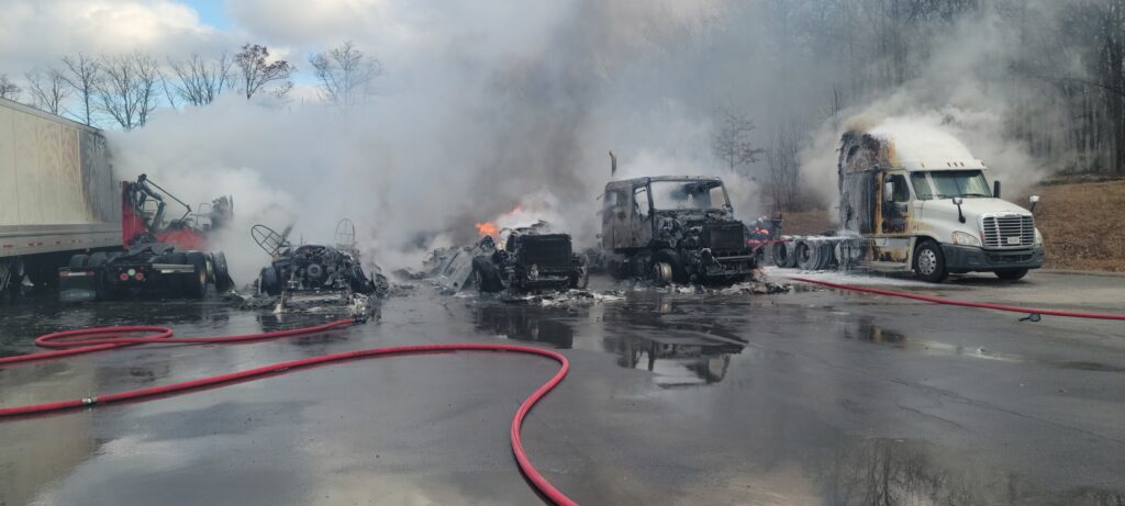 Firefighters were able to knock down the truck fire, but several of the vehicles were heavily damaged.
