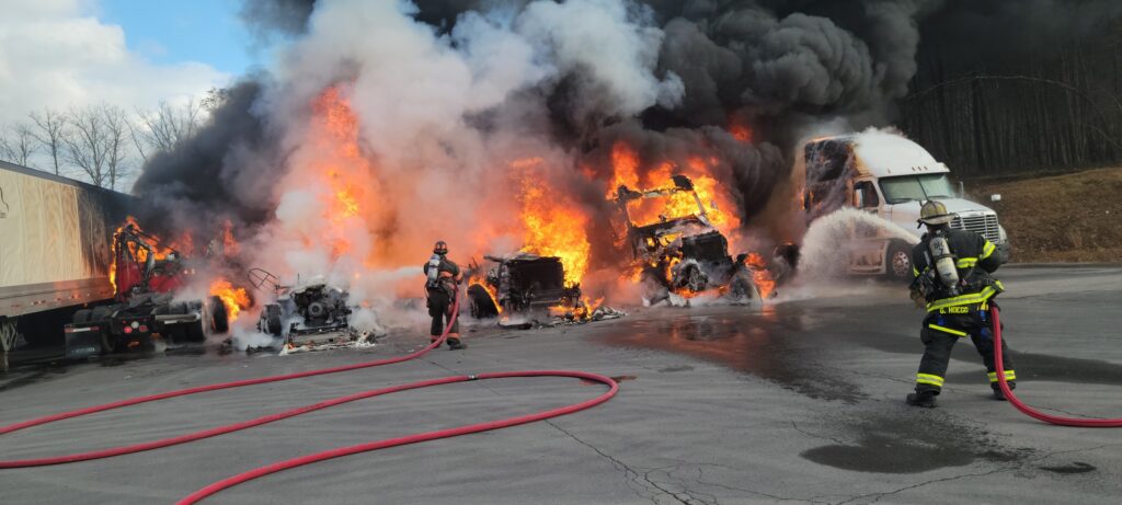 The Hazleton Fire Department (HPD) responded a blaze that caused major damage to multiple semi trucks over the weekend.