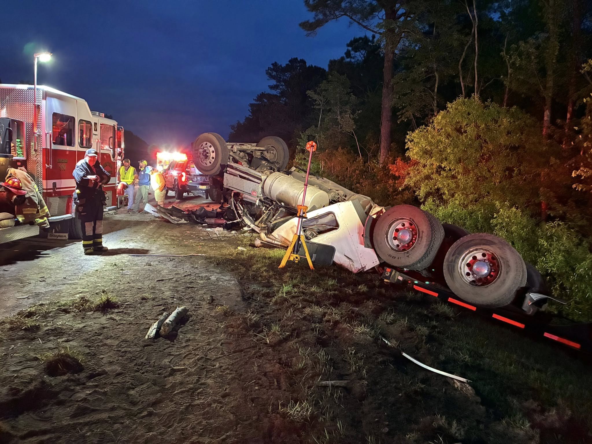 Multiple agencies responded to a serious rollover semi truck crash early Monday morning in North Carolina.
